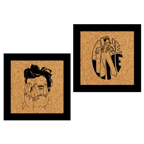 הסט כולל שתי תמונות של הארי סטיילס עם מסגרת שחורה בגודל 19 ס”מ * 19 ס”מ